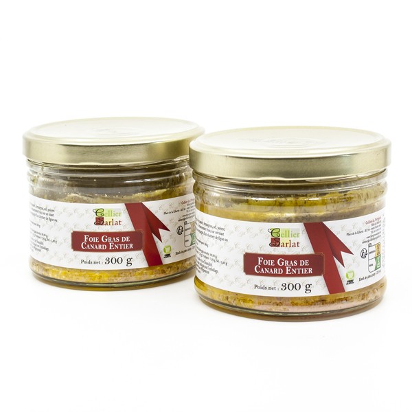 Pour un grand apéritif festif en famille ou entre amis, découvrez ce lot à un tarif avantageux de deux foies gras de canard entier de 300g chacun. Ces deux foies gras sélectionnés avec soin vous sont présentés dans leur grand bocal à ouverture facile. La recette est artisanale et traditionnelle : un foie entier, du sel et du poivre, une cuillère d'armagnac, et c'est tout !